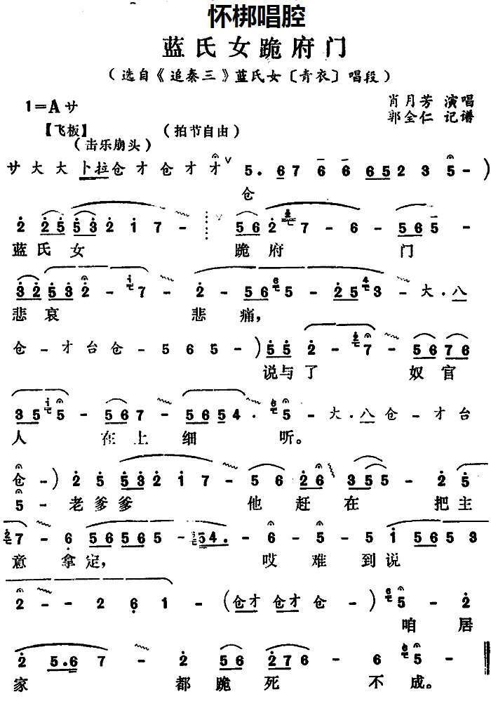 怀梆 蓝氏女跪府门 选自 追秦三 蓝氏女 青衣 唱段
