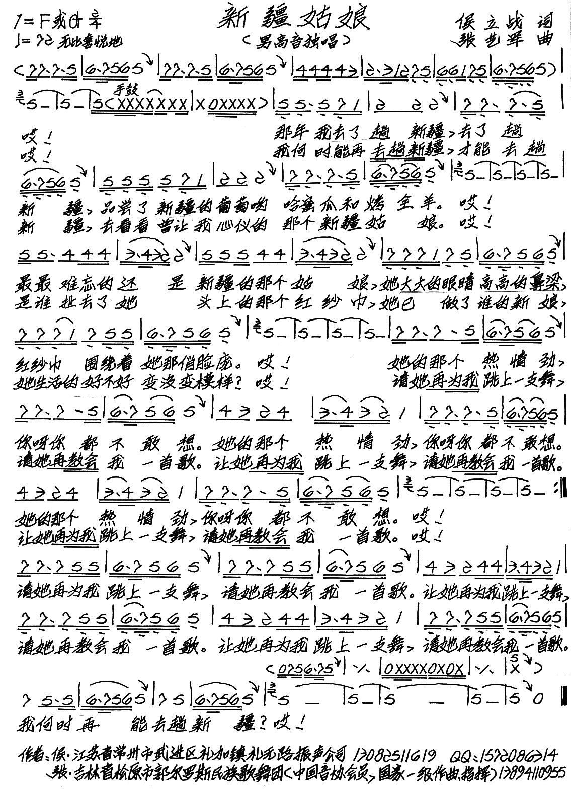 - [歌谱] 选择 电视剧 新疆姑娘 片尾曲