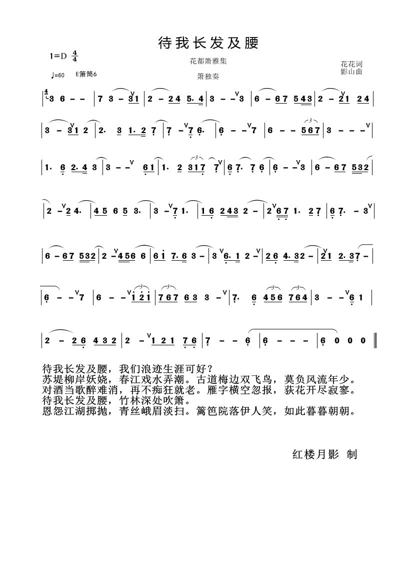 - [歌谱] 君待我发及腰长 若水芊芊等