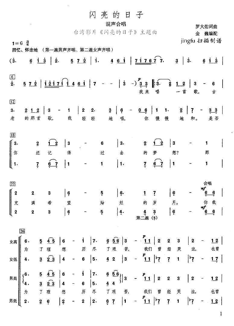 闪亮的日子 混声合唱
