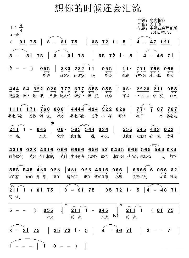 - [歌谱] 落泪的心