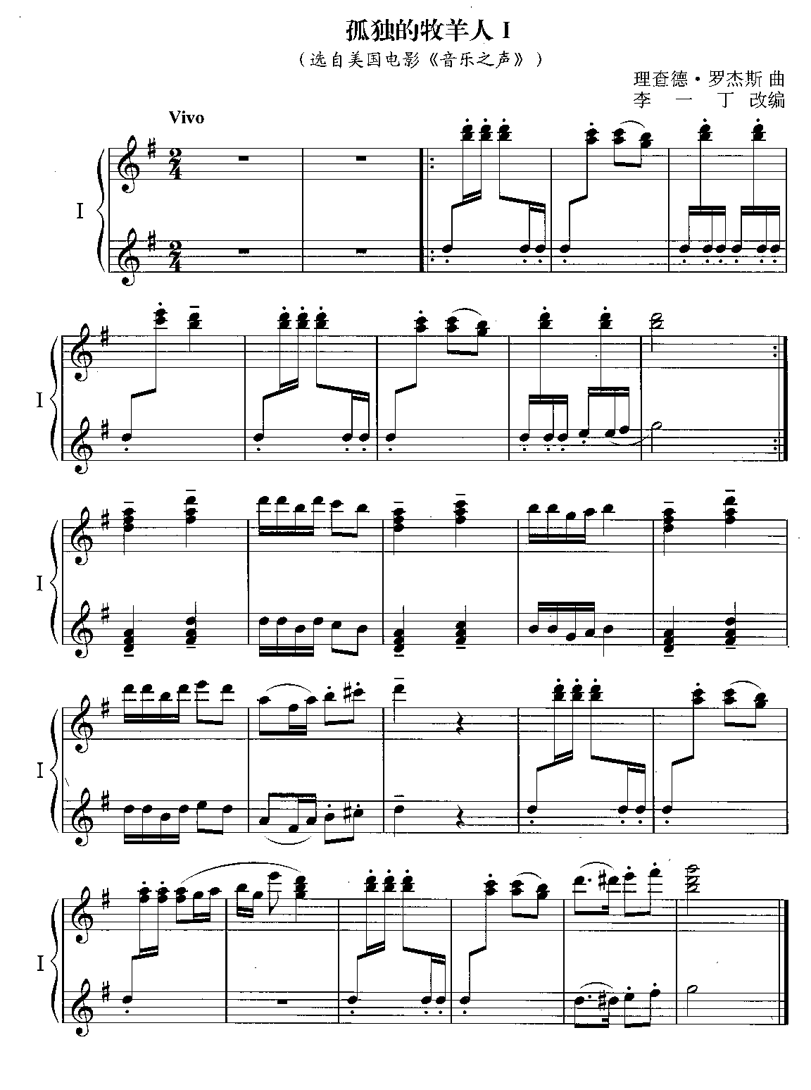 音乐之声 孤独的牧羊人 四手联弹