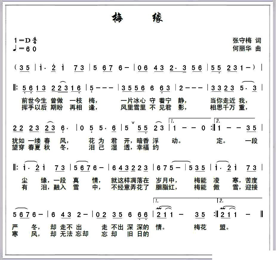 - [歌谱] 梅缘