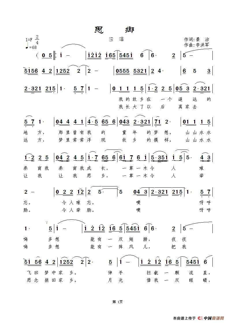 - [歌谱] 思乡