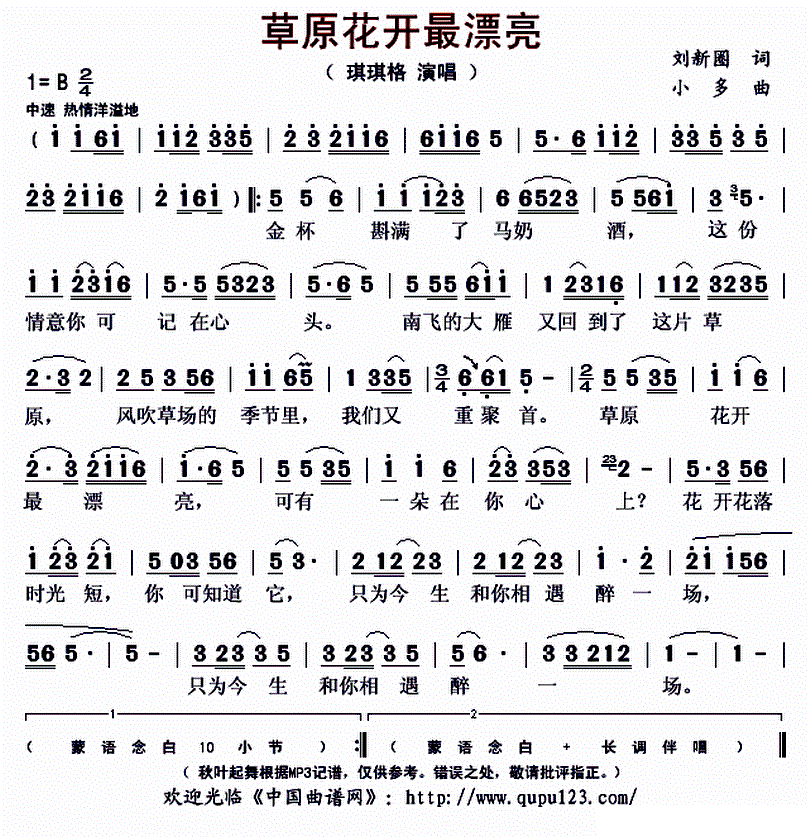 - [歌谱] 草原花开最漂亮