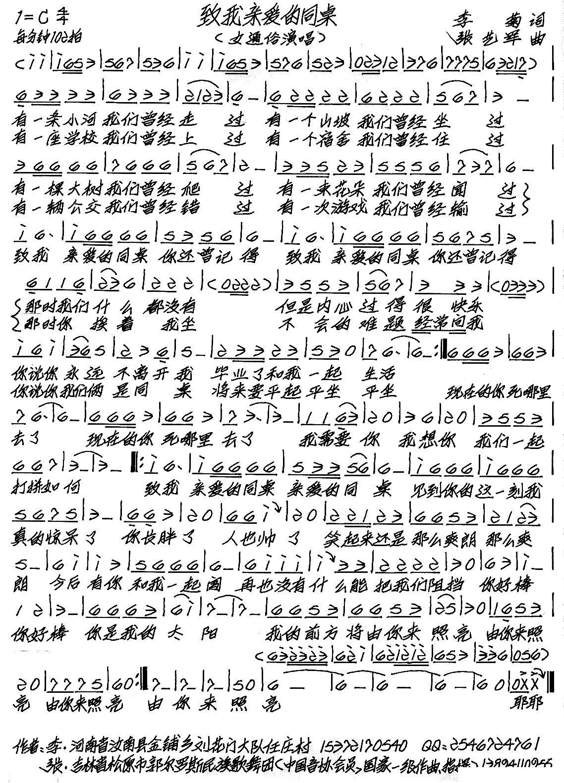 - [歌谱] 同桌的你