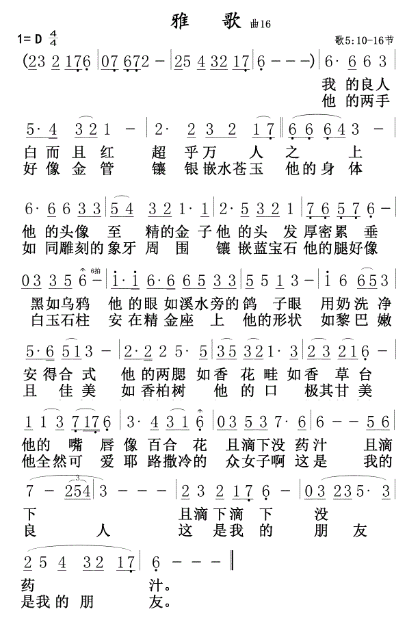 - [歌谱] 唱雅歌的姑娘 配新伴奏