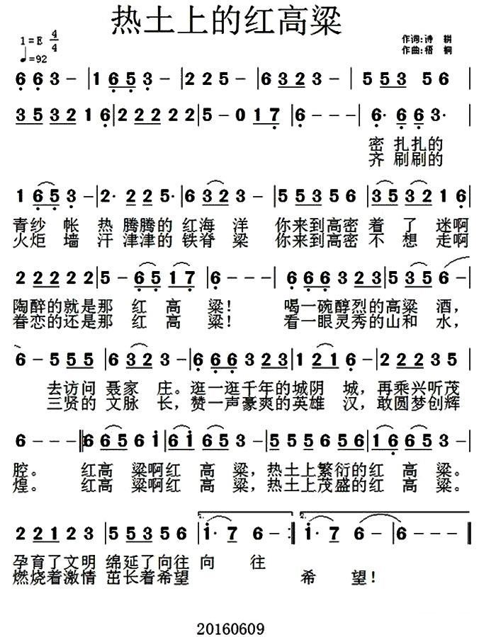- [歌谱] 轿曲 电影 红高梁 插曲