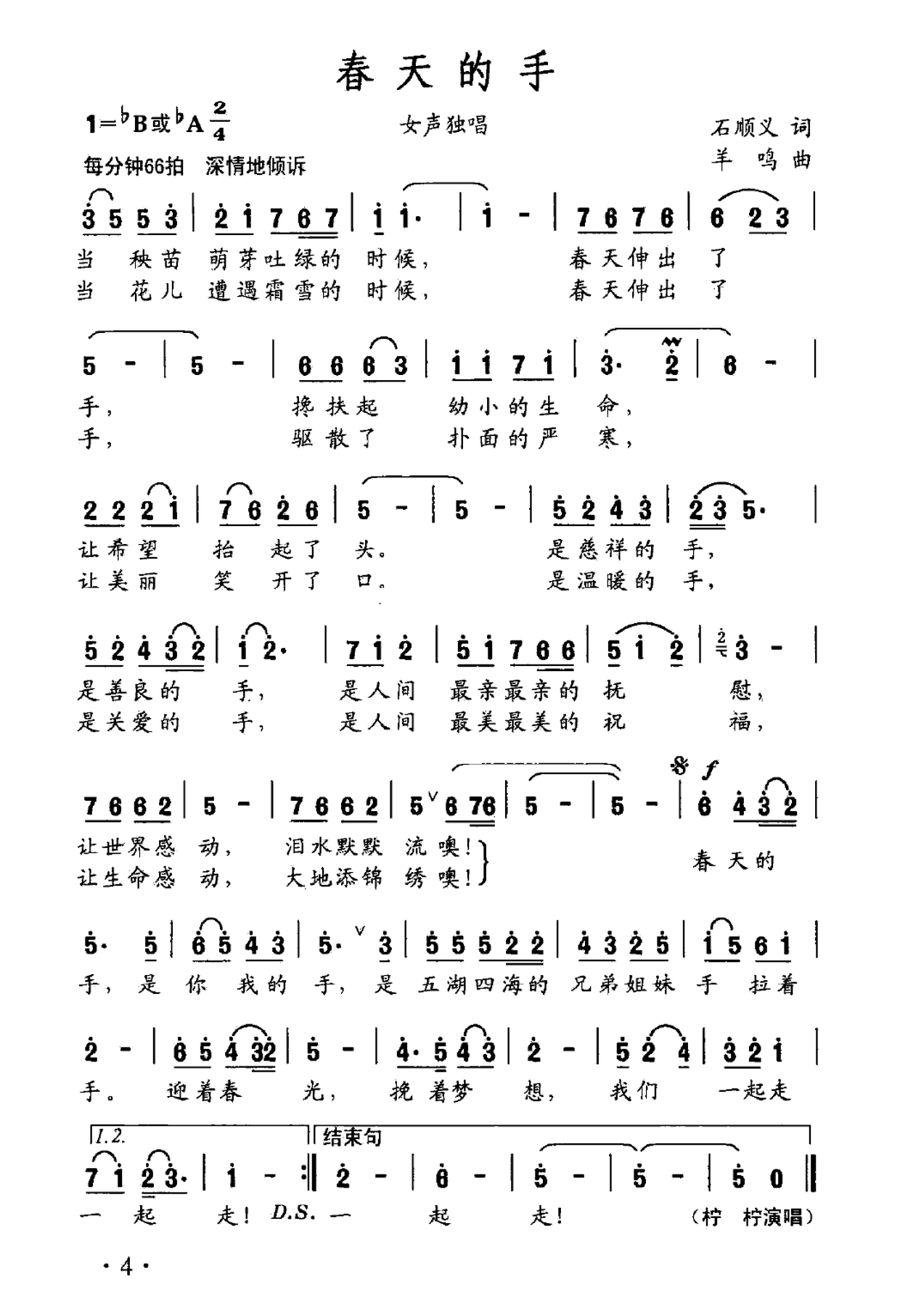 - [歌谱] 春天的手