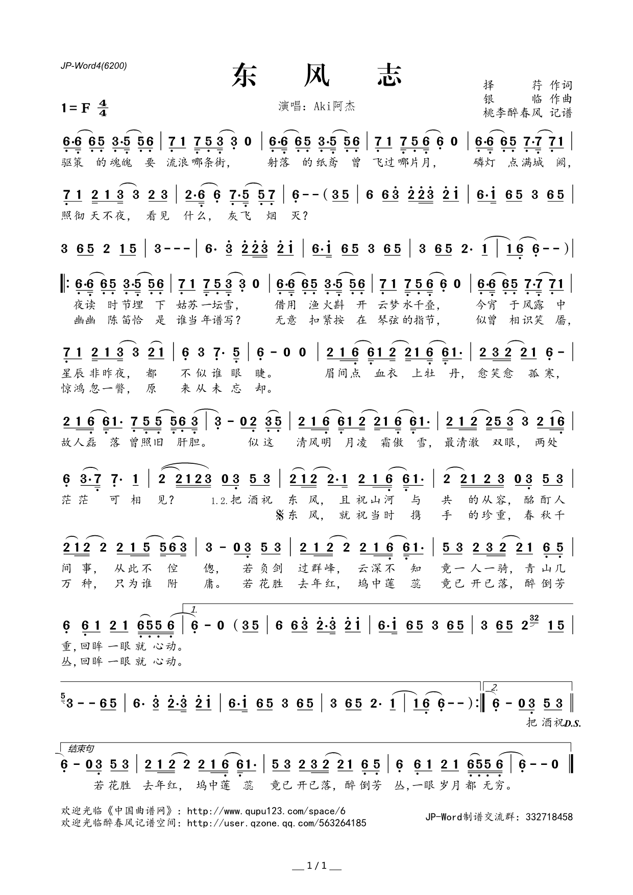 - [歌谱] 一世妆 Aki阿杰
