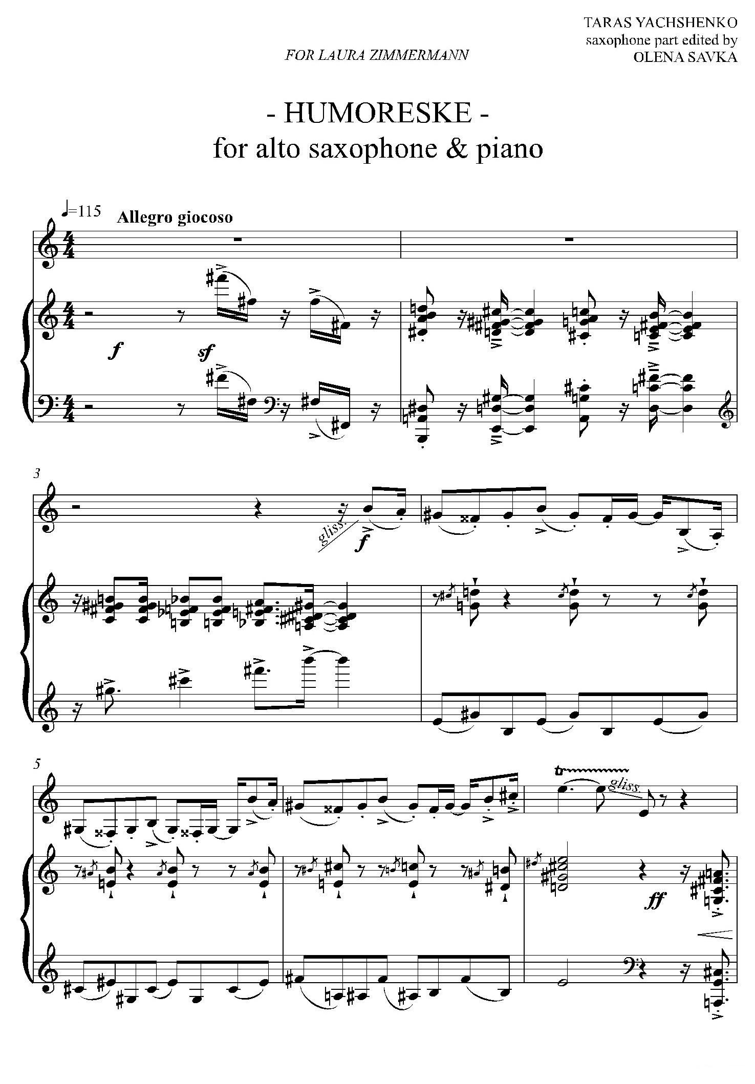 HUMORESKE 中音萨克斯 钢琴伴奏