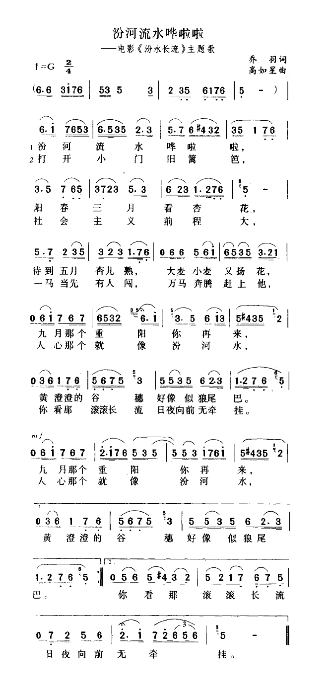 > 汾河流水哗啦啦 电影 汾水长流 插曲