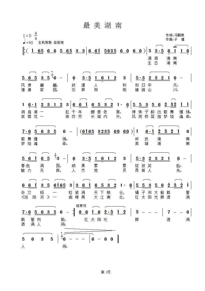 - [歌谱] 湖南美 湖南富 南梆子曲