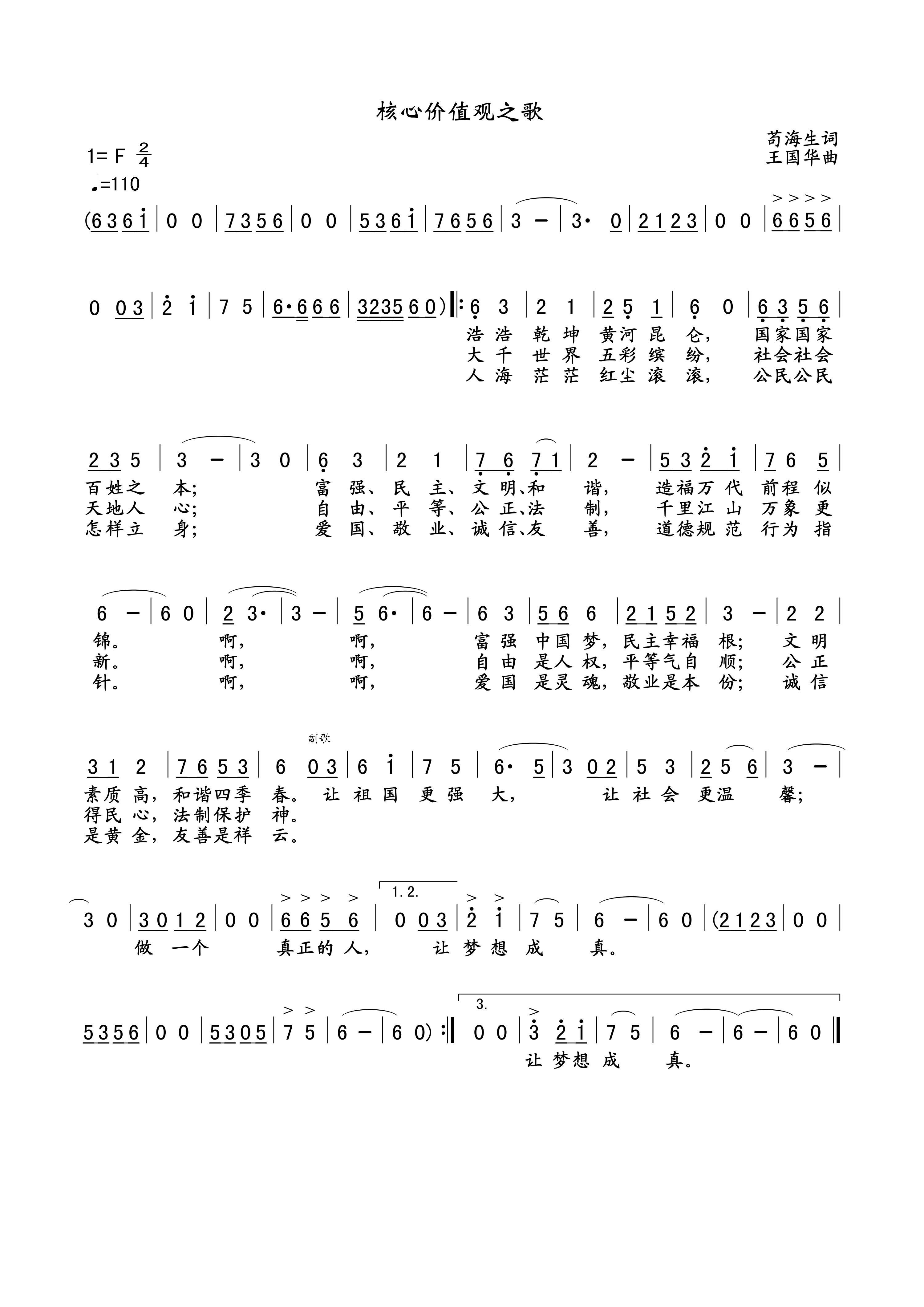 - [歌谱] 核心价值观之歌 又名 社会主义核心价值观之歌