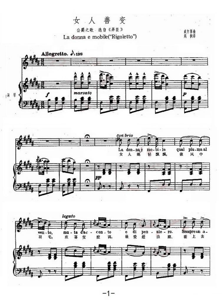 意 女人善变 La donna e mobile 中文对照 4p