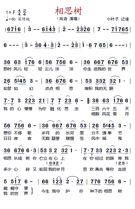- [歌谱] 相思树叶