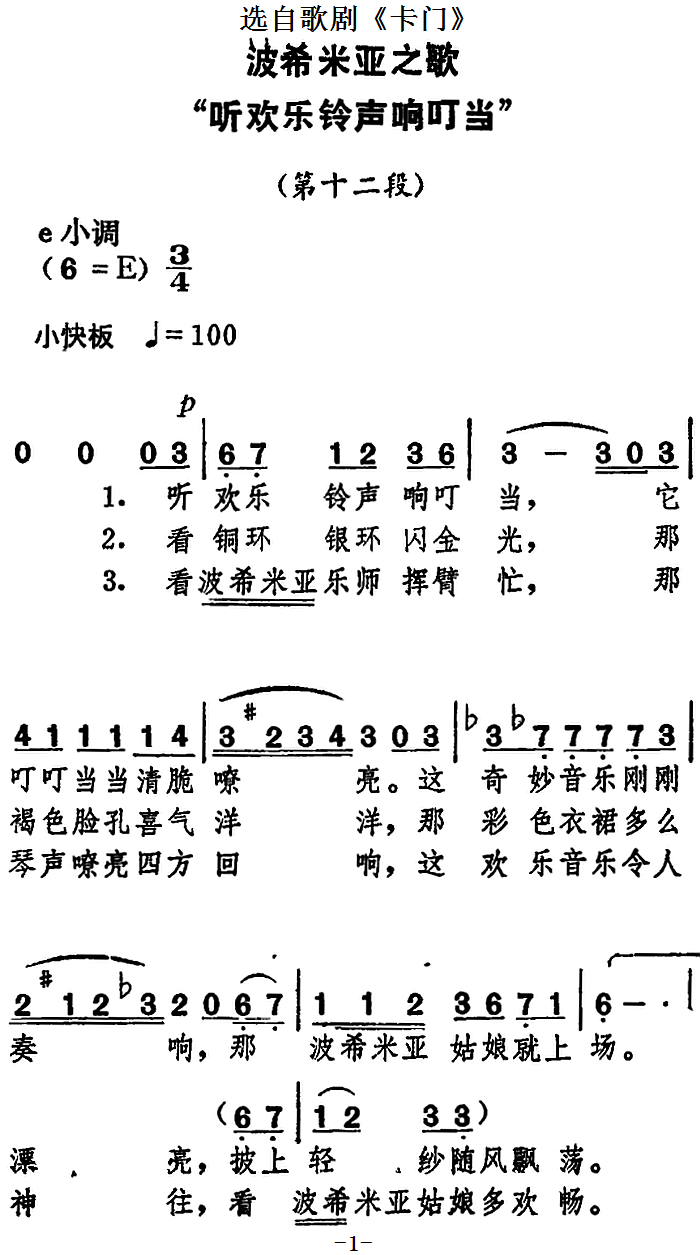 > 波西米亚之歌 听欢乐铃声响叮当 选自歌剧 卡门