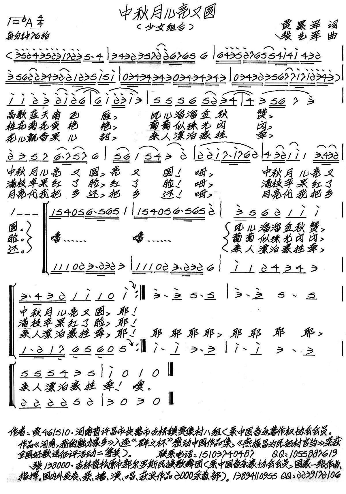 > 中秋月儿圆又亮 贾累军 词