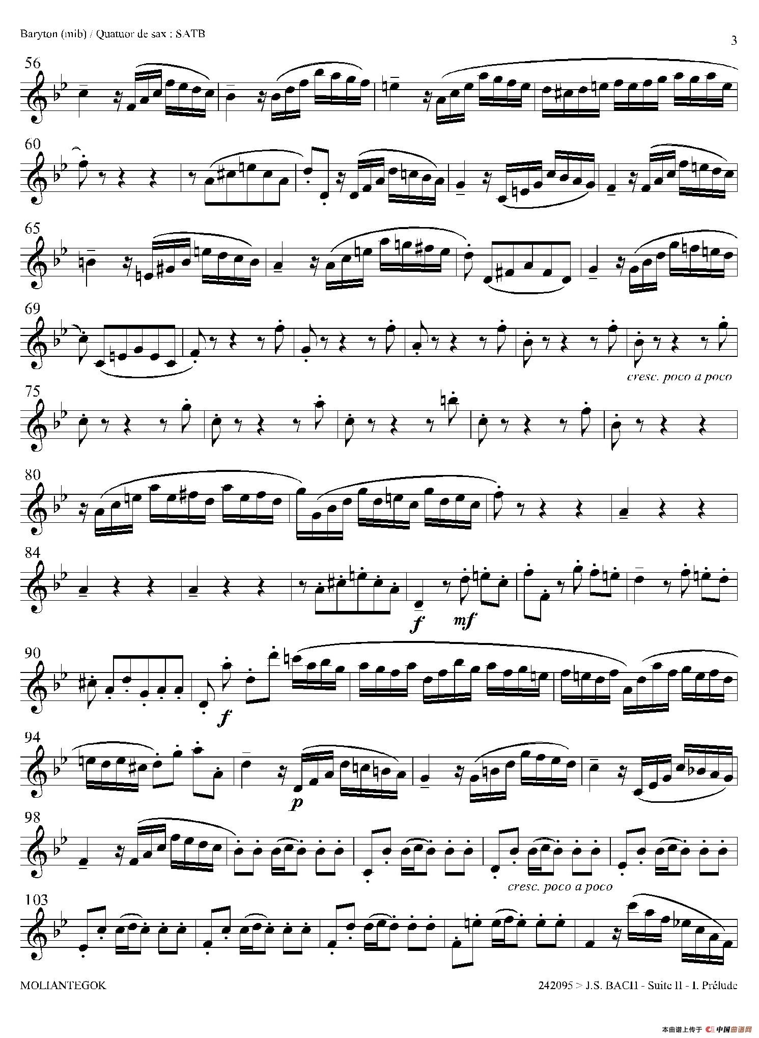 > Suite anglaise No 2 BWV 807 法国组曲之二 前奏曲 上低音萨克斯