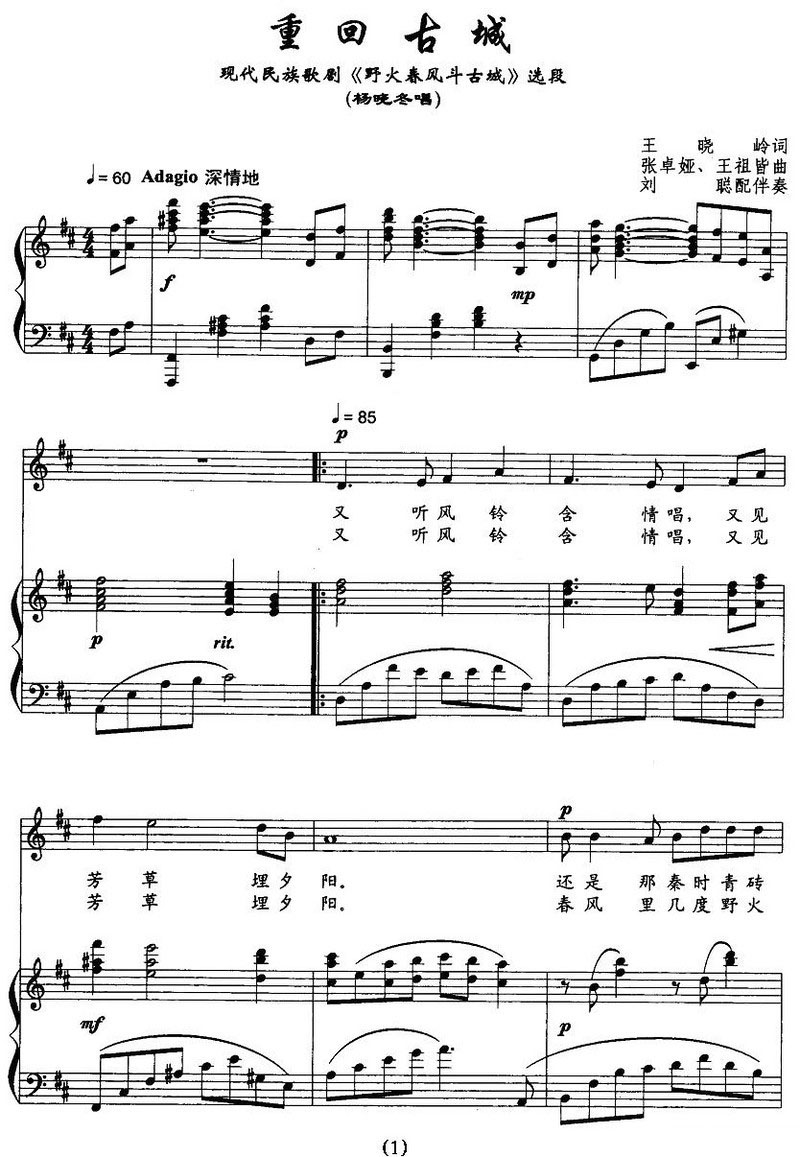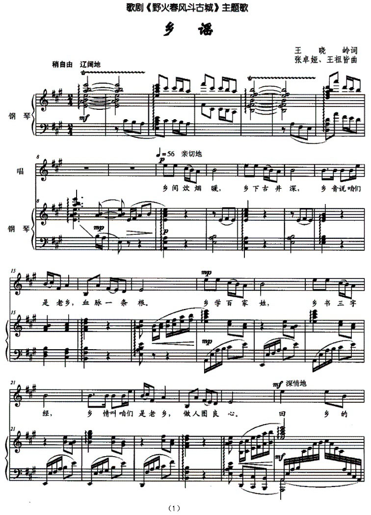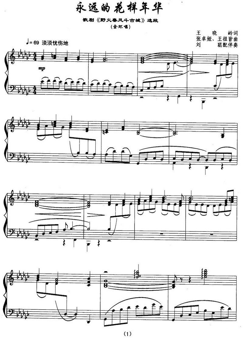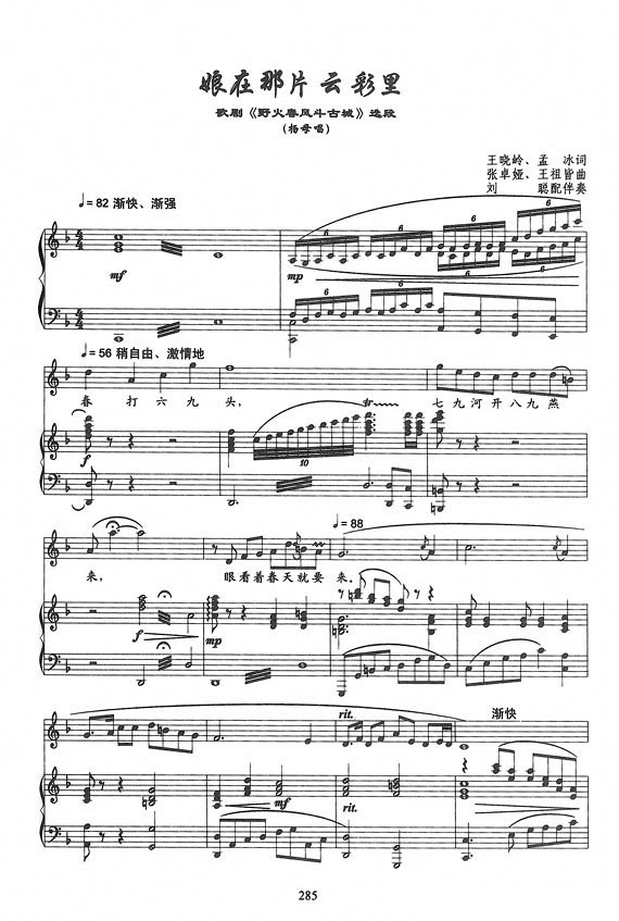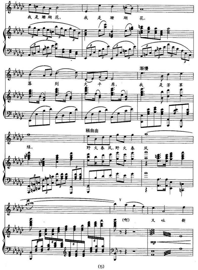 > 歌剧 野火春风斗古城 钢伴谱6首