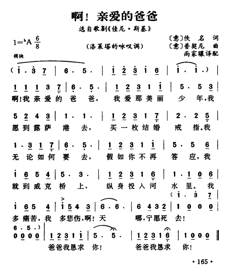 > 意 啊 亲爱的爸爸 歌剧 佳尼 斯基 洛莱塔的咏叹调