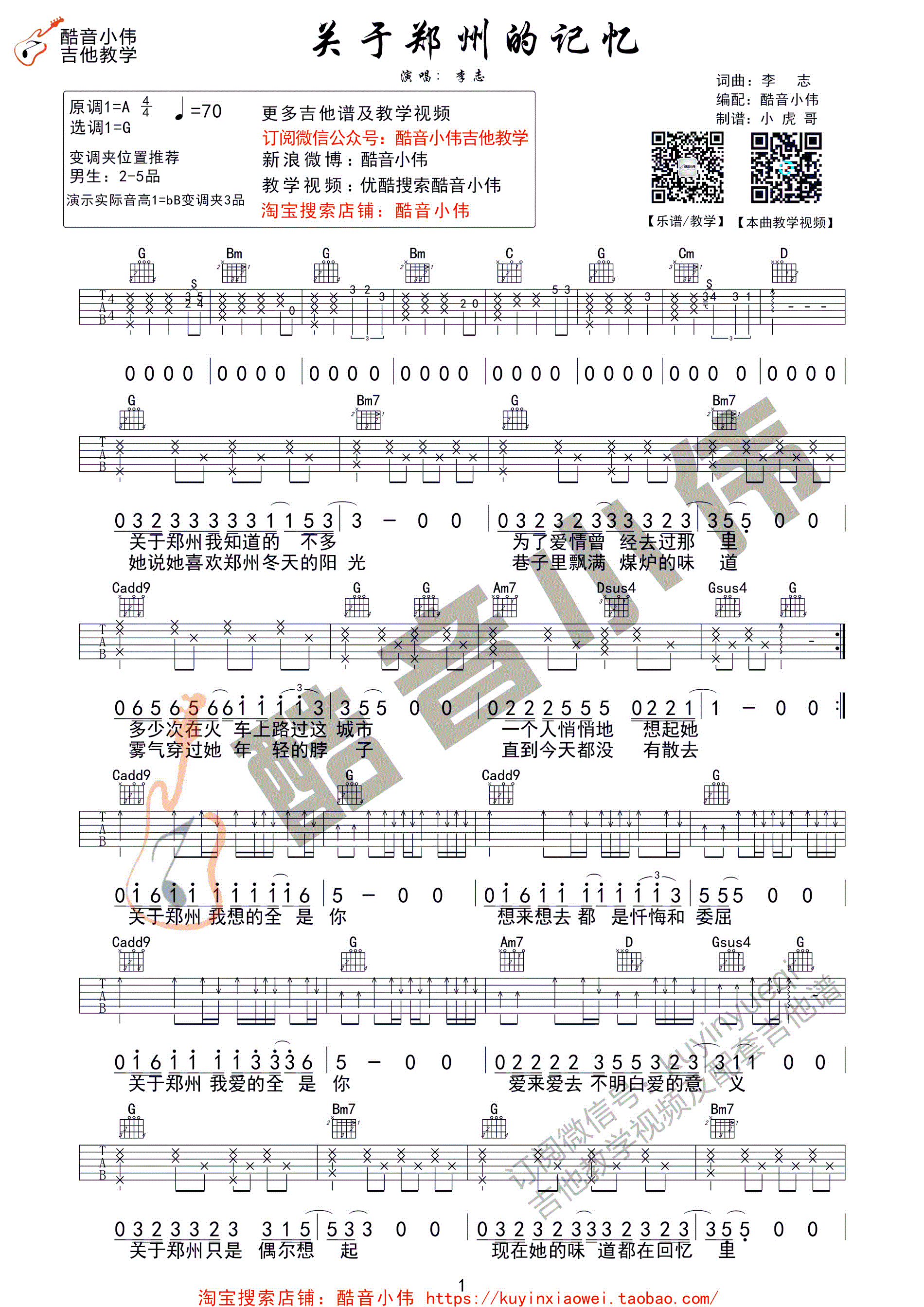 > 关于郑州的记忆 酷音小伟编谱