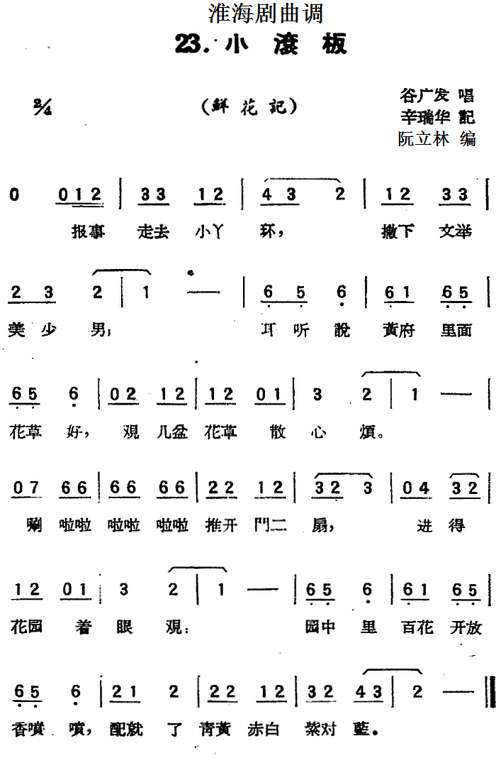淮海剧曲调 小滚板 鲜花记