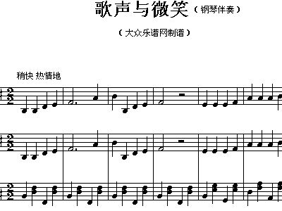 - [钢琴谱,歌谱] 歌声与微笑 钢伴