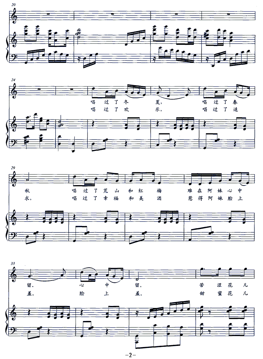 - [钢琴谱] 花儿情 钢琴伴奏谱