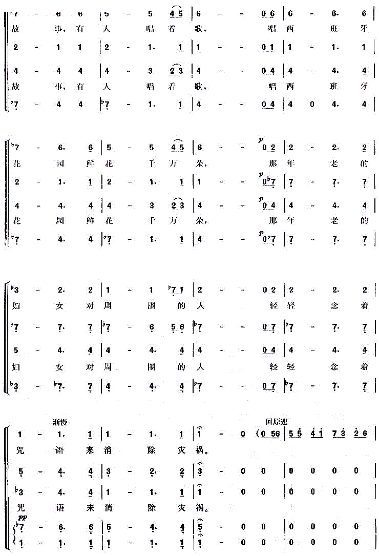 - [歌谱] 山楂树 合唱