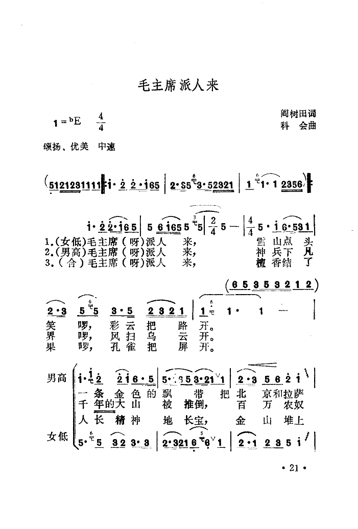男女二重唱 毛主席派人来 战旗文工团词曲