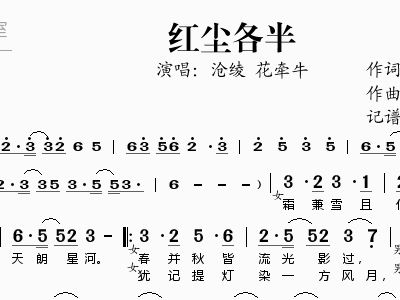 - [歌谱] 红尘各半 沧绫 花牵牛