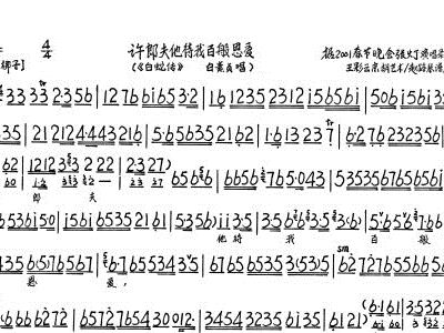 许郎夫他待我百般恩爱 白蛇传 选段 京胡伴奏谱 京剧唱谱