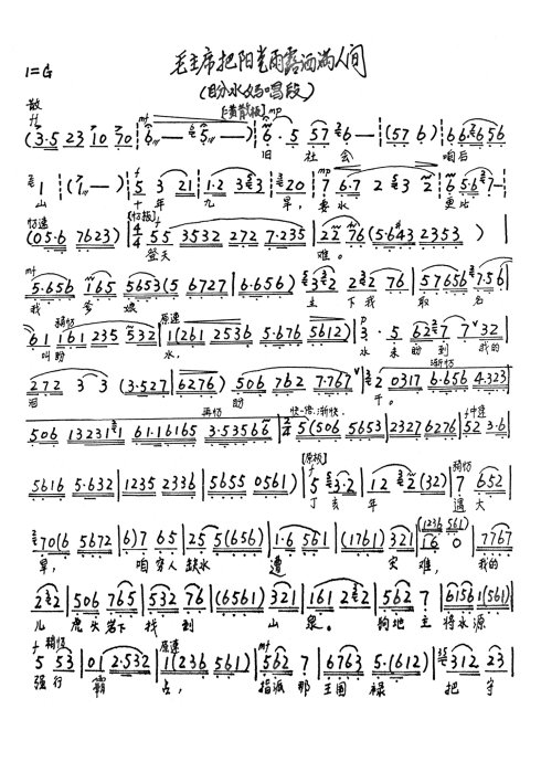 毛主席把阳光雨露洒满人间 龙江颂 盼水妈唱段 琴谱 京剧唱谱