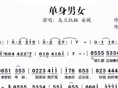 - [歌谱] 单身男女 乌兰托娅 安琥