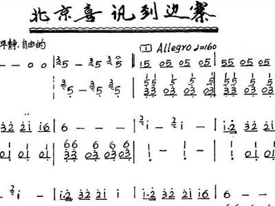 - [单簧管谱,电子琴谱,歌谱,吉他谱,口琴谱,小号谱] 041 北京喜讯到边寨