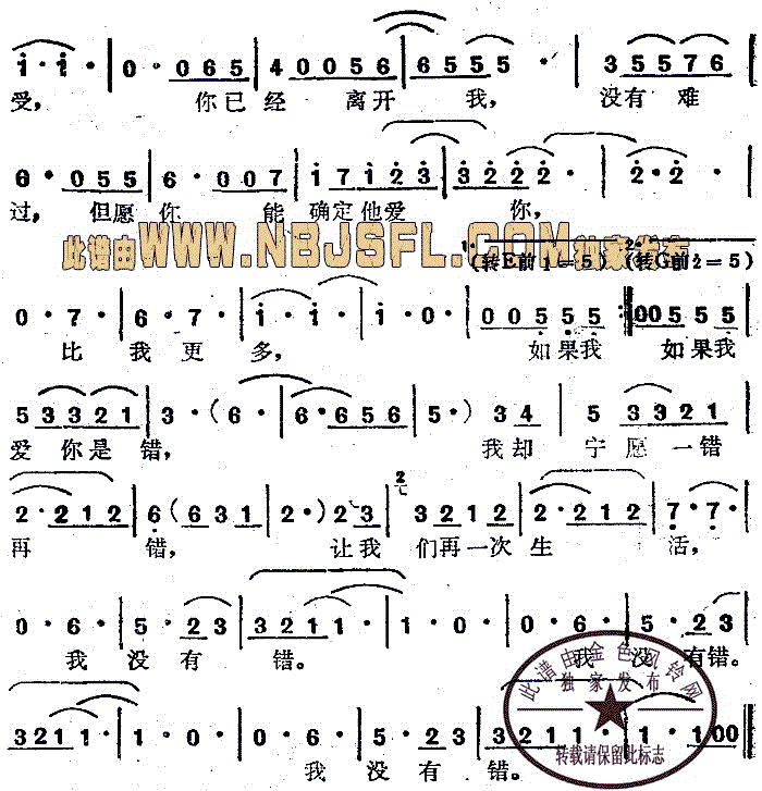 - [歌谱] 千错万错爱你没有错