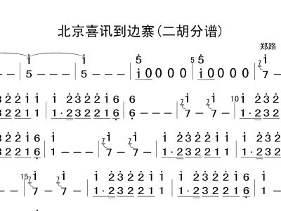 - [二胡谱,分谱,总谱] 北京喜讯到边寨 二胡
