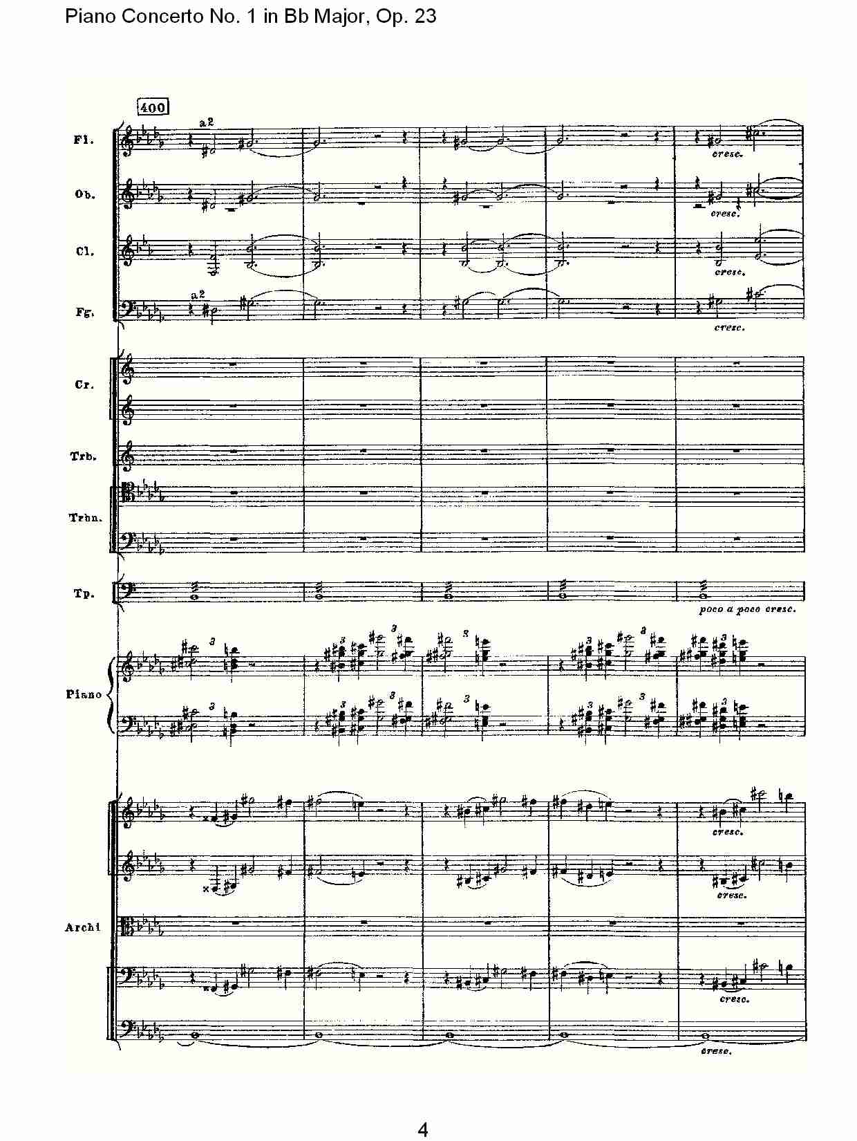 - [钢琴谱,总谱] Bb大调第一钢琴协奏曲 Op 23第一乐章第二部 四