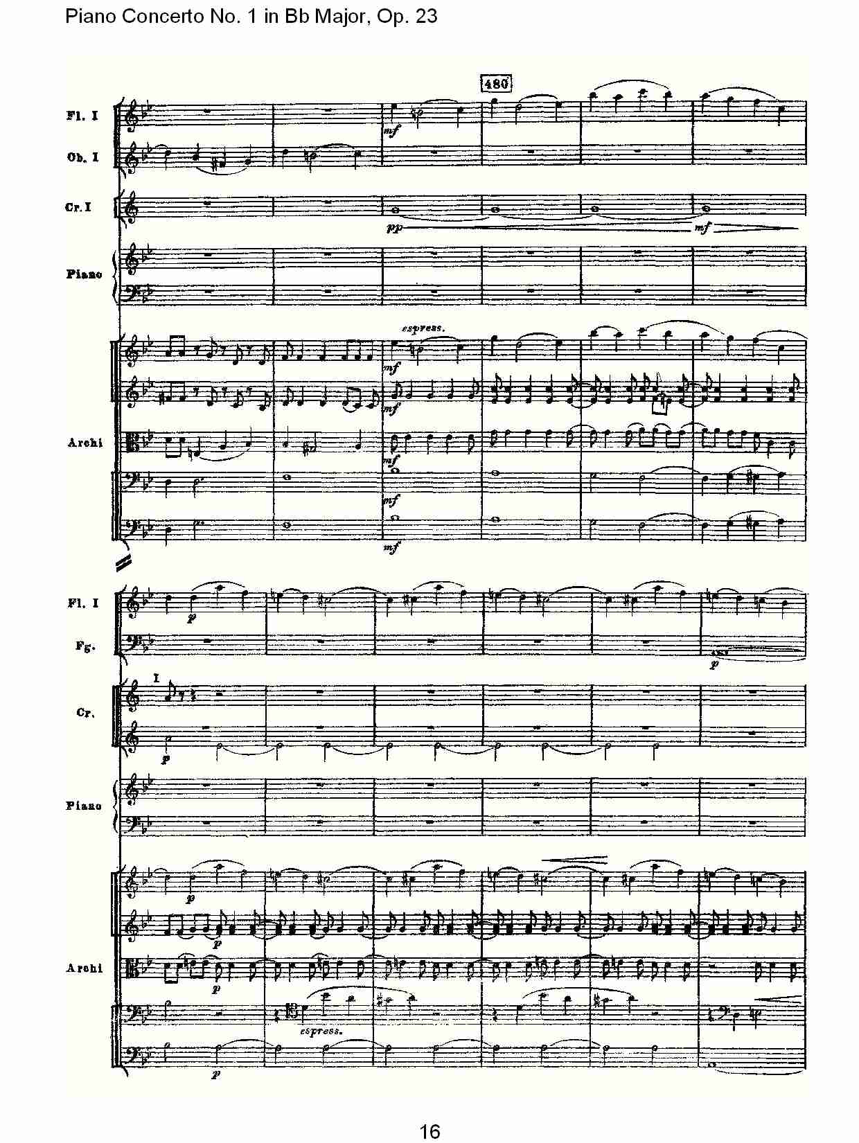 - [钢琴谱,总谱] Bb大调第一钢琴协奏曲 Op 23第一乐章第二部 六
