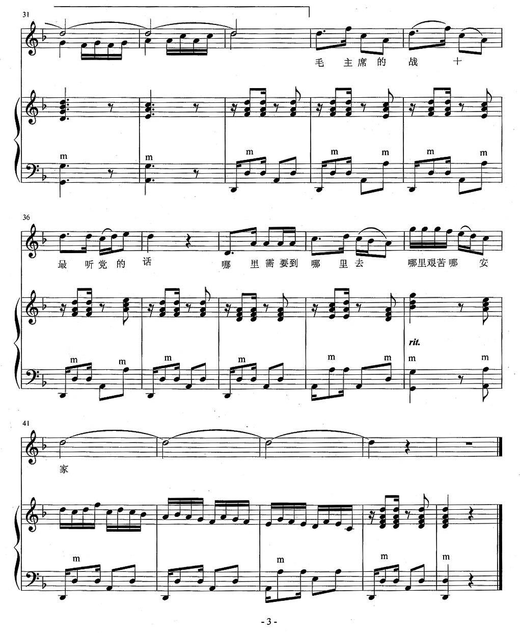 > 毛主席的战士最听党的话 手风琴伴奏谱