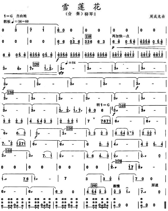 - [钢琴谱,歌谱] 雪莲花 钢伴谱