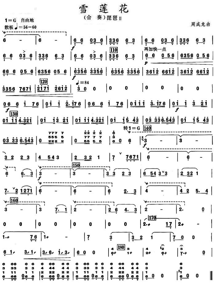 - [分谱,琵琶谱,总谱] 雪莲花琵琶