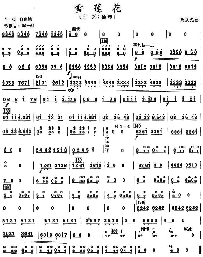 - [分谱,扬琴谱,总谱] 雪莲花扬琴