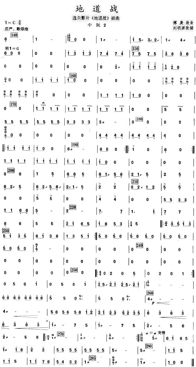 - [分谱,扬琴谱,总谱] 地道战扬琴