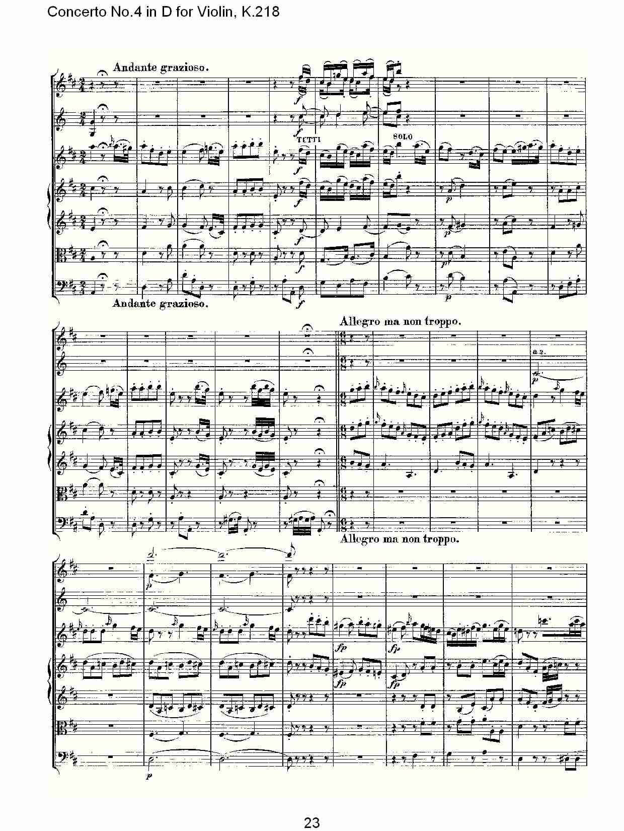 - [小提琴谱,总谱] D调小提琴第四协奏曲 K 218 四