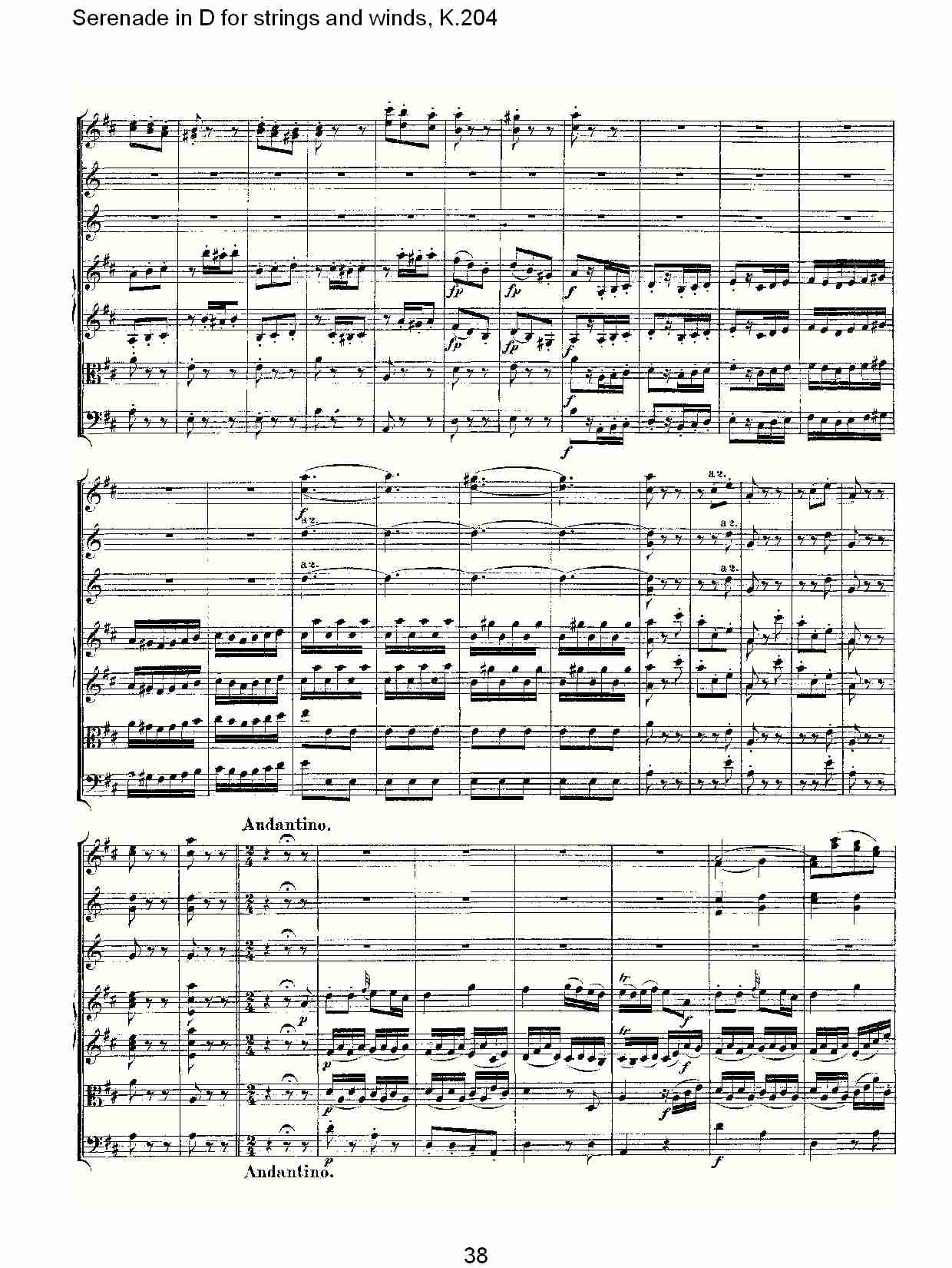 - [歌谱,总谱] D调管弦乐小夜曲 K 204 八