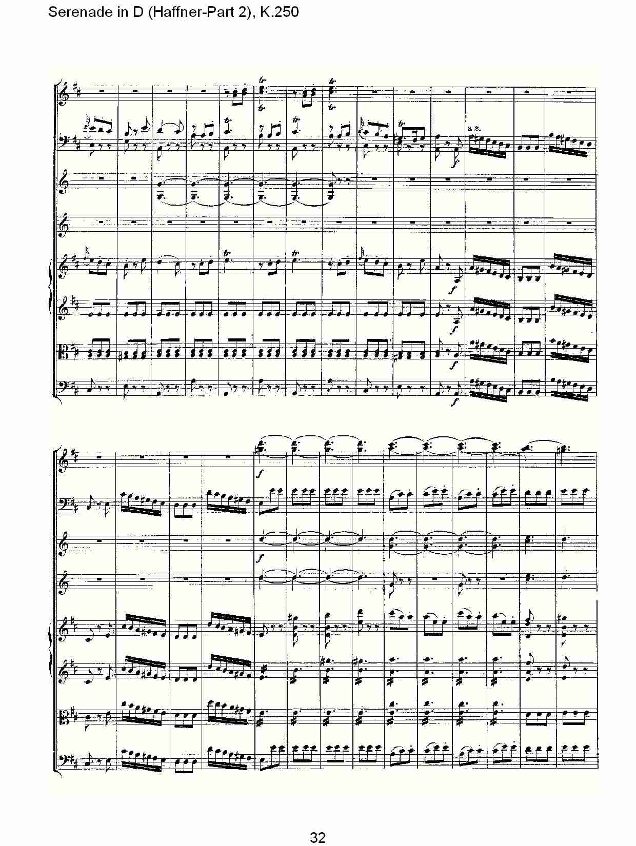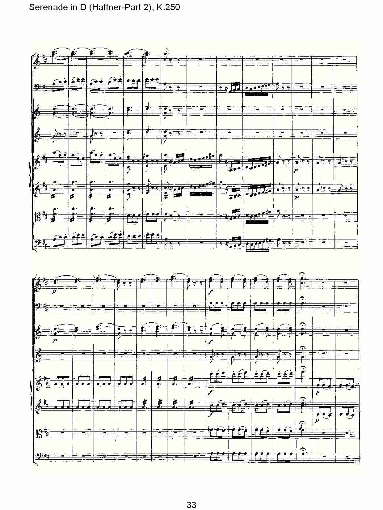 - [歌谱,总谱] D调小夜曲 Haffner 第二部 K 250 八