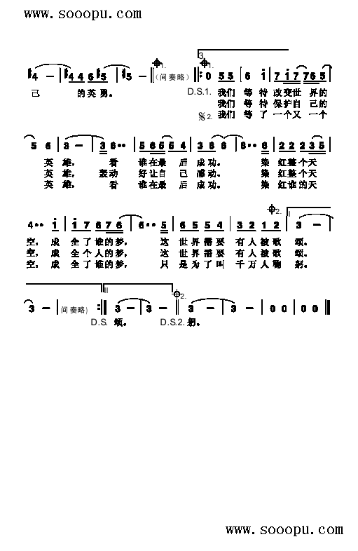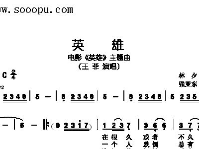 - [歌谱,吉他谱] 英雄 影片 英雄 主题曲