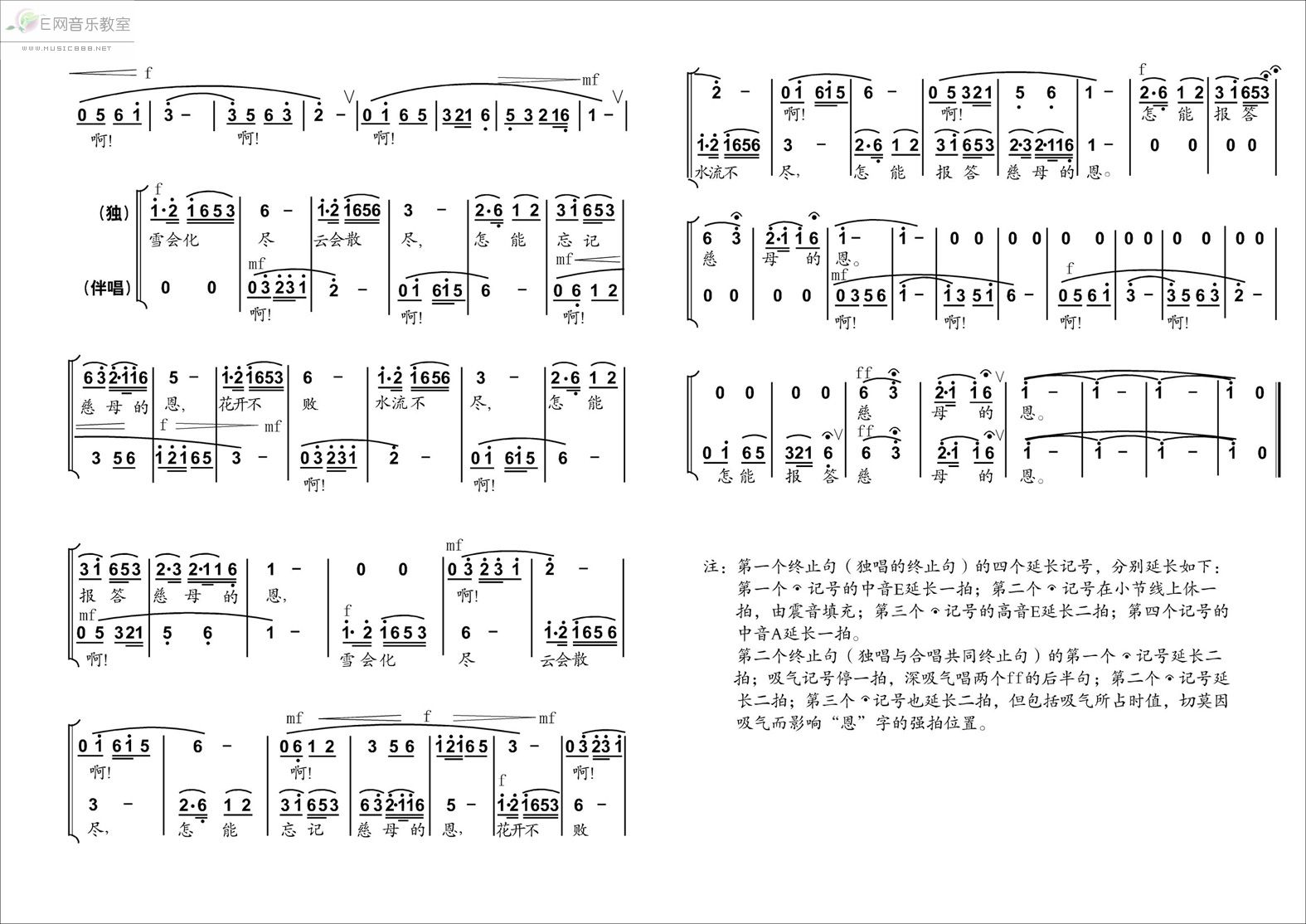 - [歌谱] 母爱